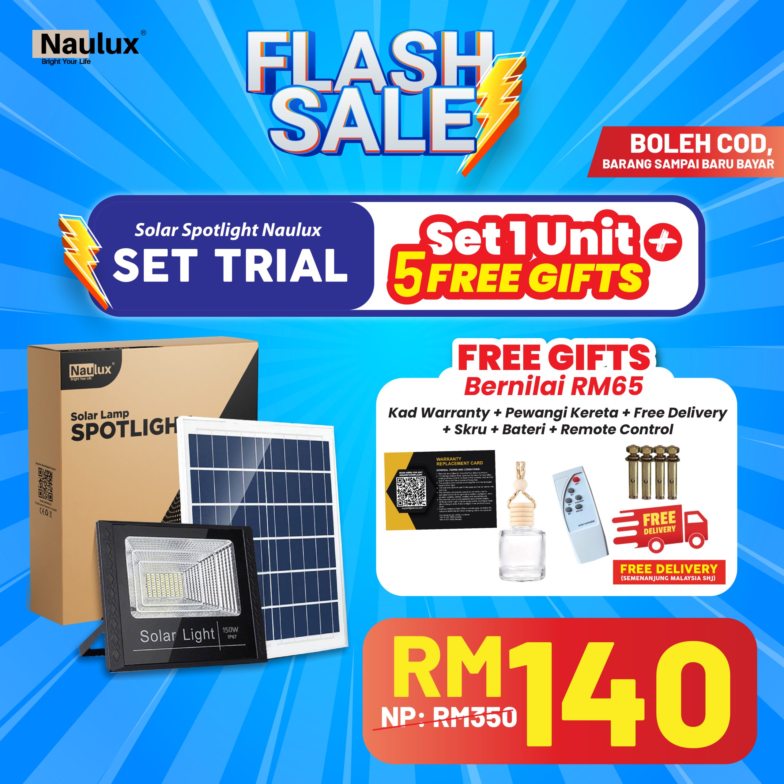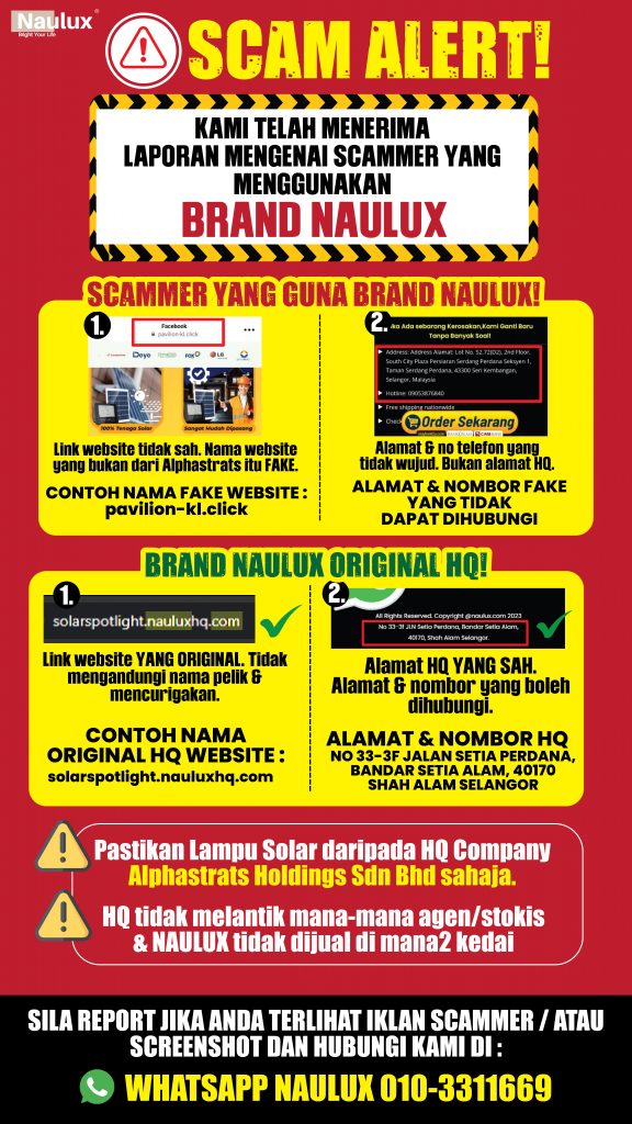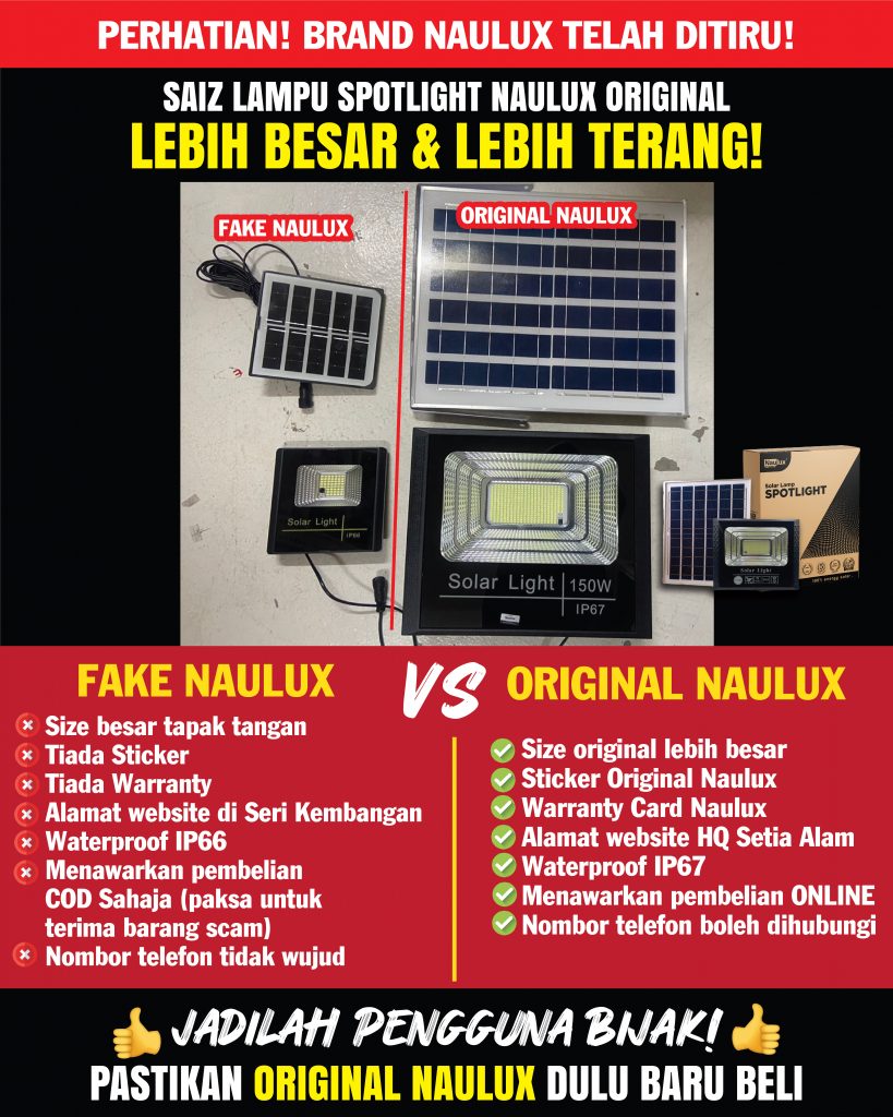 TAK PERLU RISAU LAMPU SOLAR NAULUX NI ADA 100% JAMINAN